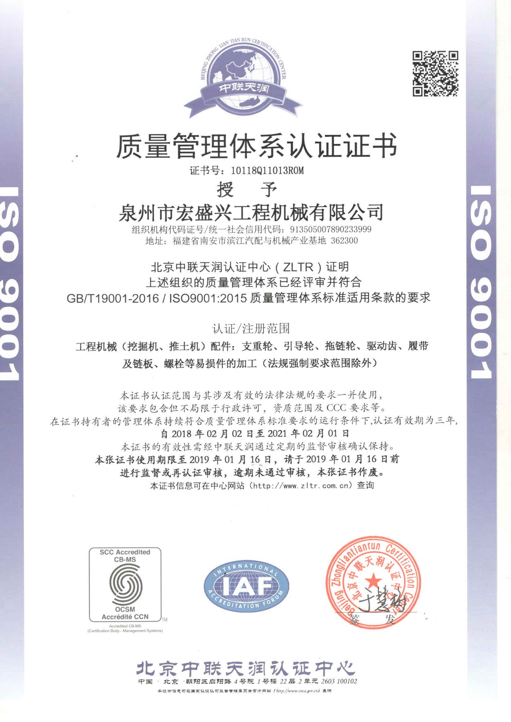 質(zhì)量管理體系認(rèn)證證書